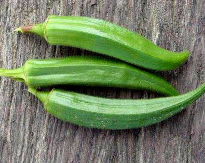 The plant produces heavy yields of flavorful 9 long dark green okra.